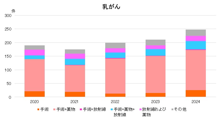 各症例の薬物療法は、抗がん剤やホルモン剤を使用した治療を指します。痛みの緩和のために使用した薬剤による治療は「その他」に該当します。また、「その他」治療には、明記されているもの以外の治療(含:無治療や経過観察)が該当します。